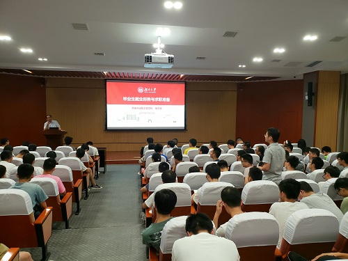 易洪波从就业面临的新挑战、就业准备、毕业生就业分析、就业注意事项等四个方面给同学们分析了机械行业当前的就业形势。